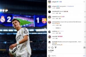 他也在赛后通过社媒晒出自己的比赛照,并配文:“最伟大的爱,马德里前进!”